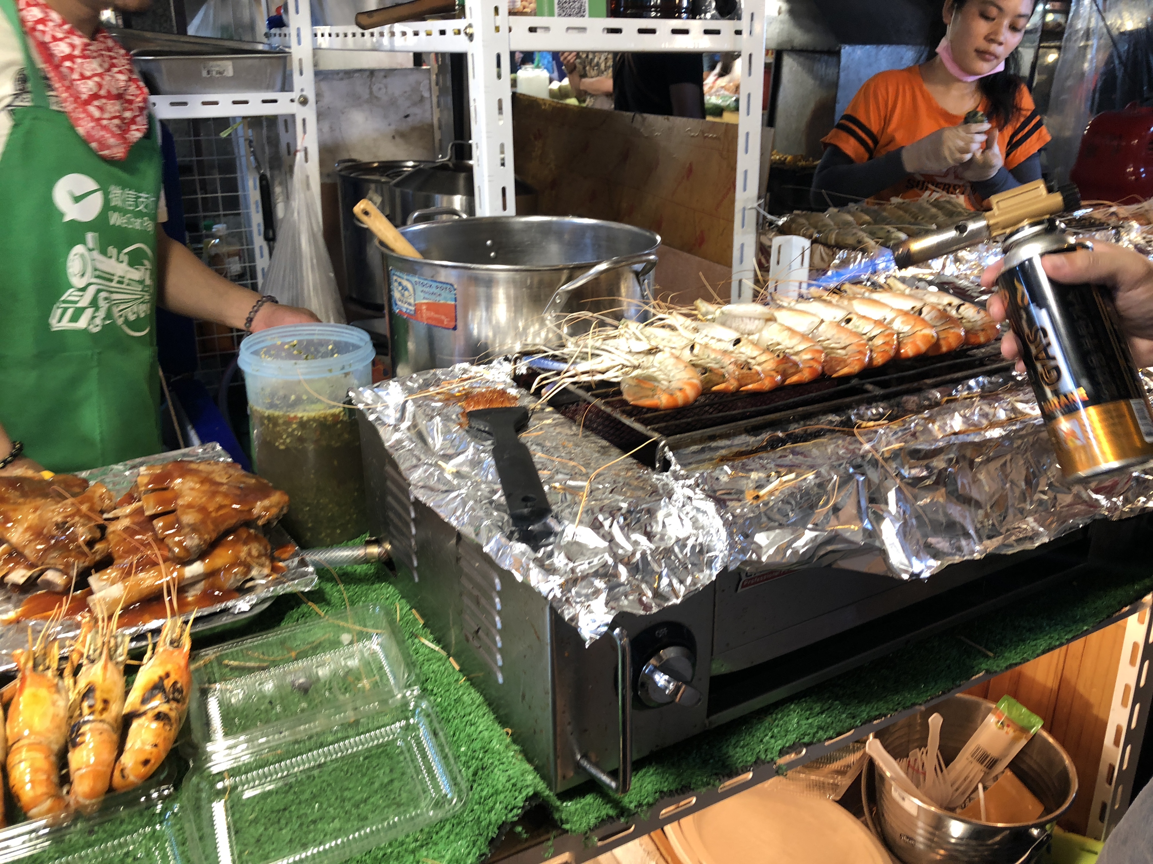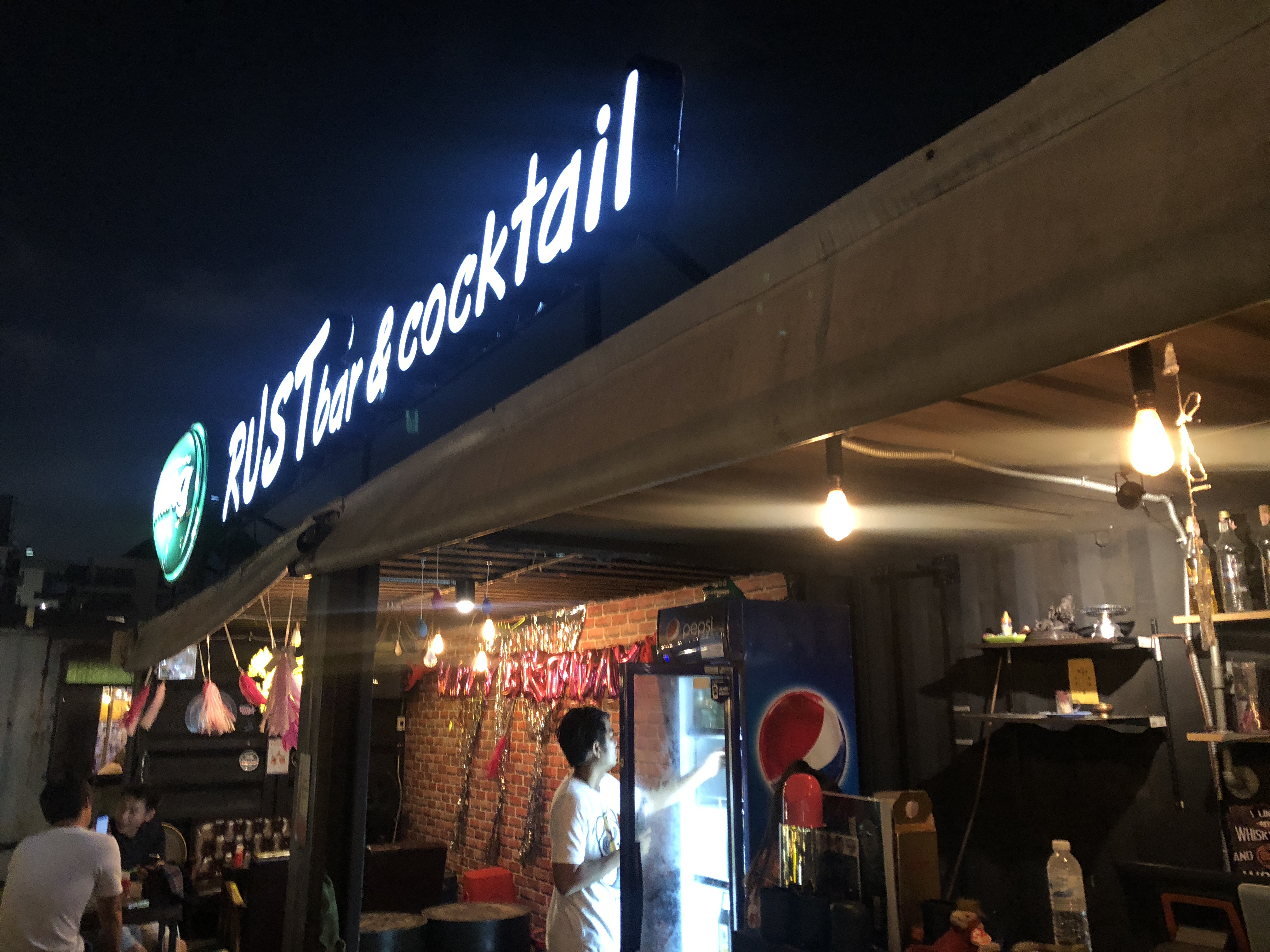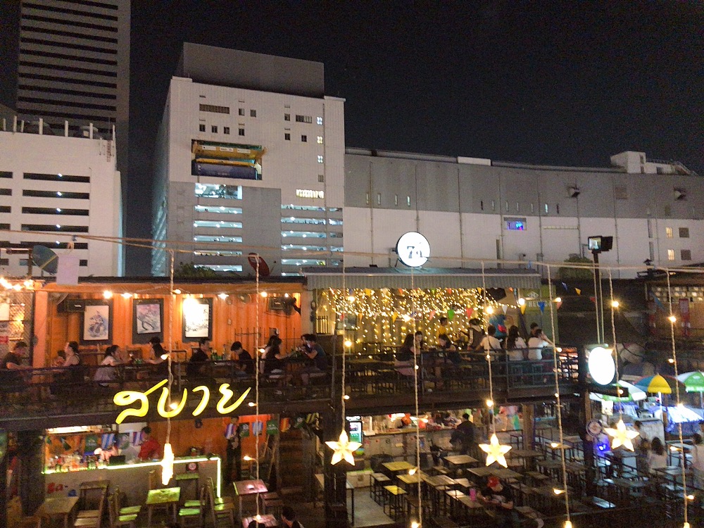 야시장 구경하고 땡모반이랑 바나나로띠 사들고 바에 자리잡기